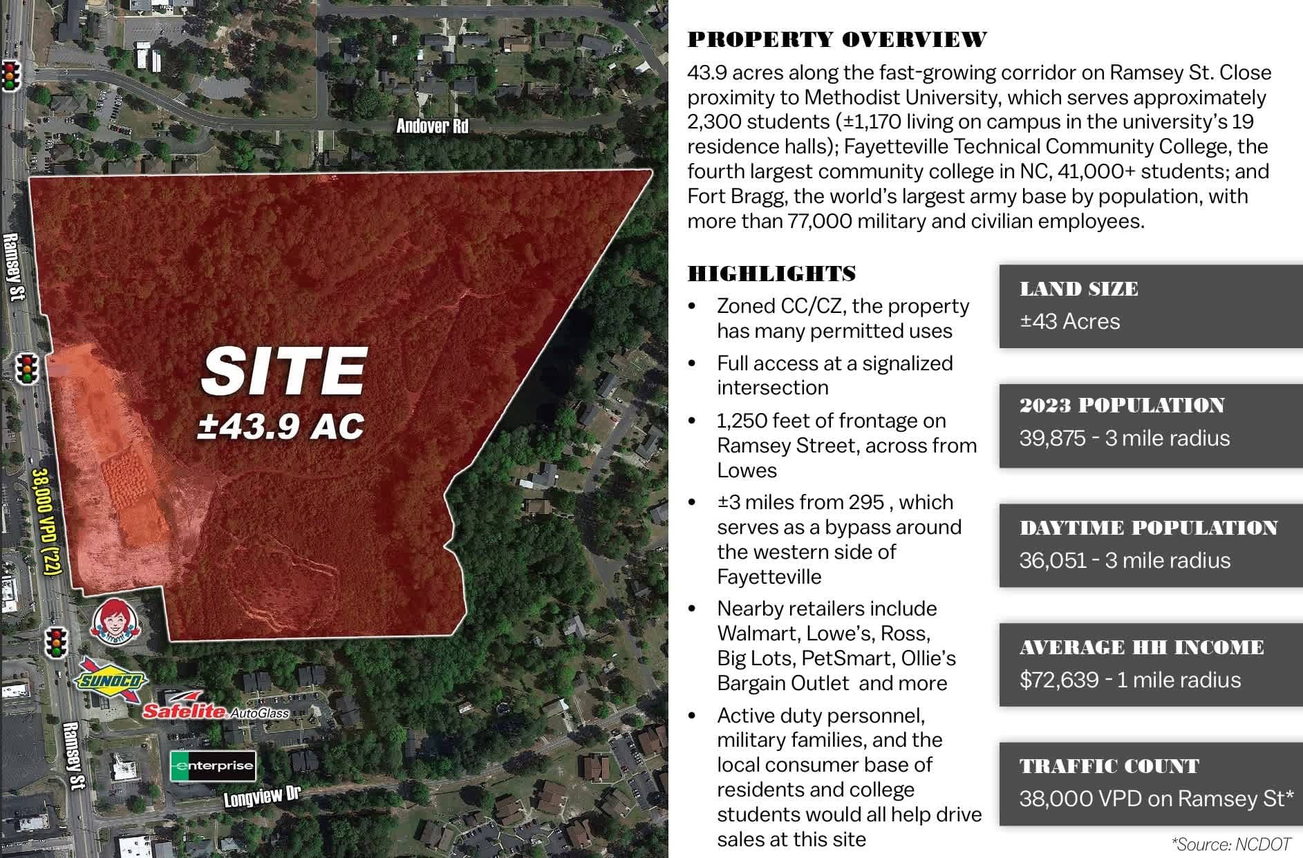 This 43+/- acre project boasts an impressive 1,200 feet of frontage and is located on a busy retail corridor featuring national tenants Walmart, Lowe's, Ross, Chick-Fil-A and Big Lots. With 40,000+ ADT (average daily traffic) passing by, this location offers prime exposure for businesses looking to establish a strong presence in the area. The project also benefits from full access at a lighted intersection, making it easily accessible to both drivers and pedestrians.
